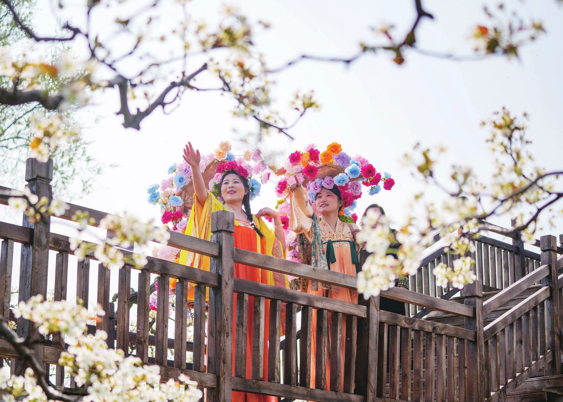 城内,唐风建筑群巍峨矗立,近代风格街区别具韵味,精心布置的人工花卉与古建筑相映成趣,宛若一幅流动的春日画卷。从盛大的开城表演到丰富多彩的互动项目,全天节目安排紧凑,让游客在浓郁春意中尽享沉浸式游园体验。