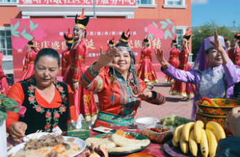 这是2024年9月27日在新疆塔城市哈尔墩社区拍摄的“邻里节百家宴”活动现场。新华社记者 任沁沁 摄