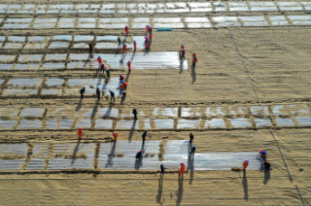 在新疆和田地区于田县沙产业实验基地,当地群众在种植薏米(2025年4月8日摄,无人机照片)。新华社记者 丁磊 摄