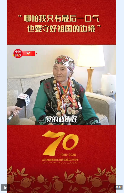 “人民楷模”国家荣誉称号获得者布茹玛汗·毛勒朵表达了她最想对总书记说的话:“我从19岁开始守边护边,哪怕我只有最后一口气,也要守好祖国的边境。”